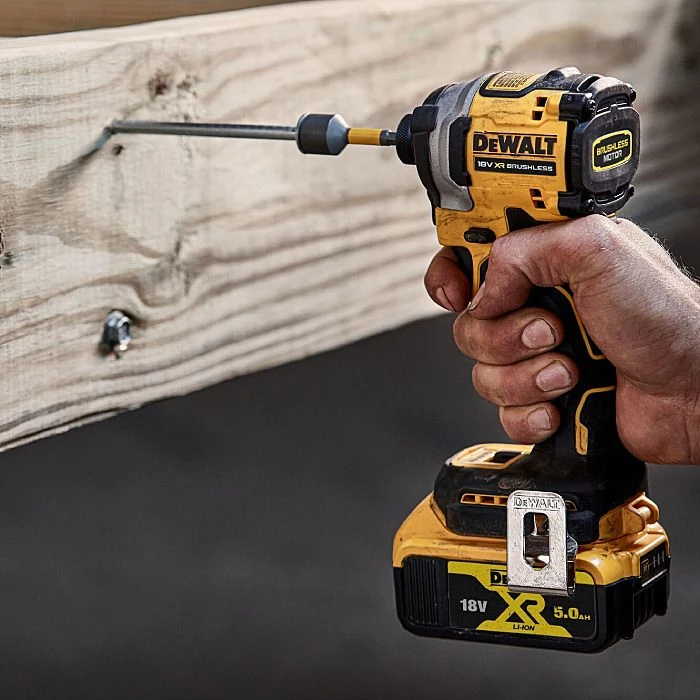 This impact driver boasts many of the same specifications as the previous generation impact driver, the DCF887. That is, except the dimensions. It uses a new latest gen brushless DC motor that has a massively reduced footprint, plus a shorter impact mechanism. This allows it to measure just 100mm front to back, compared to 135mm of the previous model. Once you hold the new DCF850 you will agree that it gives a great feel, bringing the tip of the bit closer to your hand. This version of the tool is supplied without batteries or charger, letting you get a hold of the bare unit without needing to fork out for another battery, charger and case if you already own all the kit.