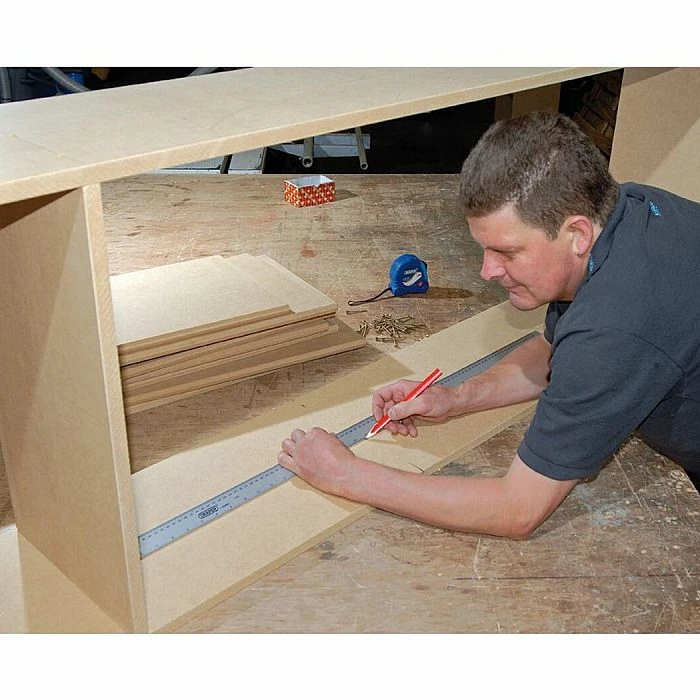 Extruded from 30mm wide anodized aluminium. Clearly graduated both sides mm/cm, inches, 1/8″ and metric-imperial equivalents of length, area, volume and weight.