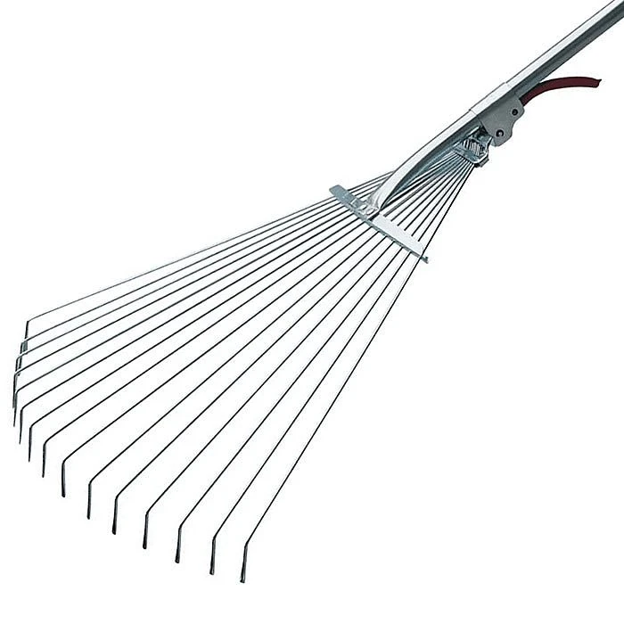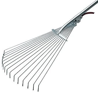 Adjustable Lawn Rake by Draper suitable for collecting leaves, glass, moss and for a range of garden maintenance tasks. The rake features fifteen flexible round tines mounted in a heavy gauge pressed steel frame and zinc plated for corrosion protection.