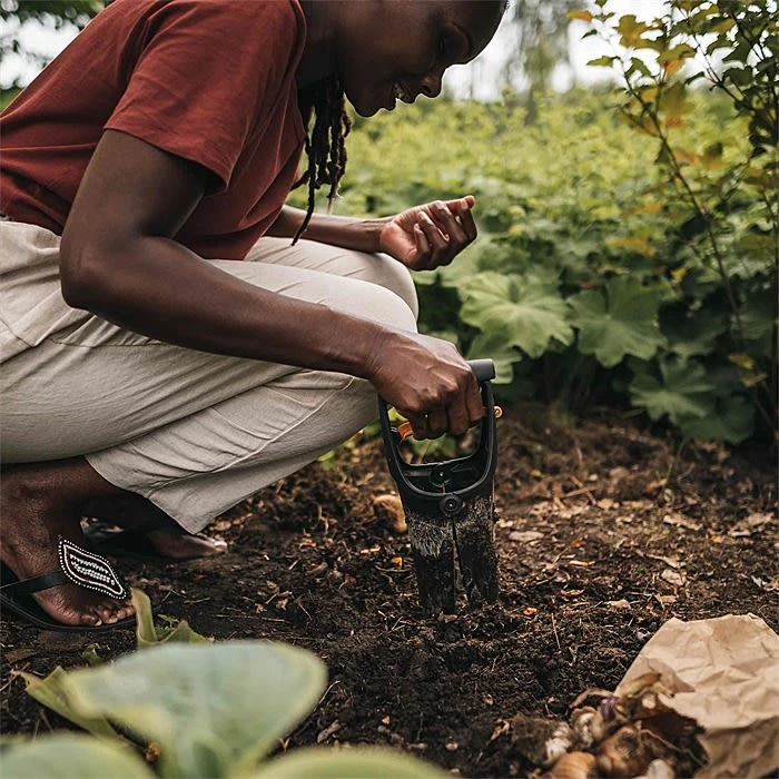 Manufactured from Fiskars’ FiberComp™ material, this bulb planter makes it much easier to plant bulbs and seedlings quickly and accurately. The planter even has graduations on the side which lets you follow any specific planting depth requirements of particularly sensitive bulbs or seeds. Once you have placed your bulb or seedlings in the hole, you can replace the soil by squeezing the orange release lever.