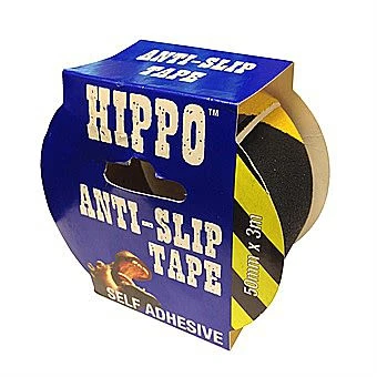 The Hippo black and yellow tape is a strong adhesive tape that will adhere to most surfaces as well as helping to prevent people slipping under foot. The tape is perfect for stairs, ramps and walkways. Once applied the tape provides a durable and effective non slip solution.