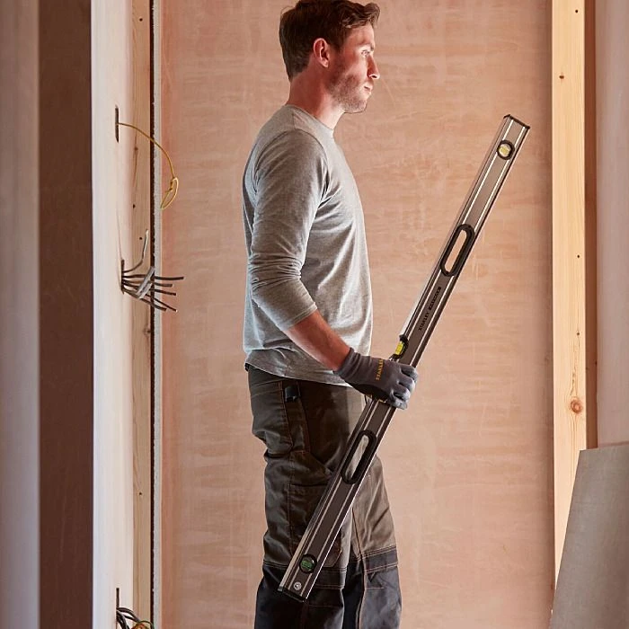 The Stanley FatMaxâ„¢ Pro level has solid-block acrylic vials to provide an accuracy of 0.5mm/m in eight orientations. The level is 5 times stronger than other Stanley levels, thanks to its unique reinforced box-beam construction. The lightweight aluminium body and sturdy bi-material handgrips make handling easy and the precision engineered, dual-machined levelling surfaces ensure maximum accuracy.