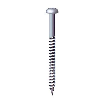 Double countersunk hardened woodscrews with 60º twin threads with parallel shank for high performance screwdriving and greater tension. Round head pozidrive 2 heads with reduced cam out and round head clamping. 25º sharp point tips and single leading thread achieves a fast start and improved thread acceptance.